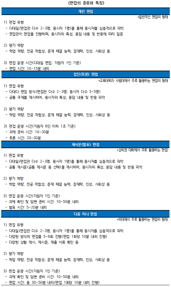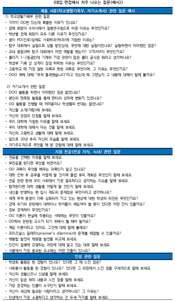 "앞으로 면접은 학생부와 자기소개서를 토대로 전공문제 인성문제 창의력문제가