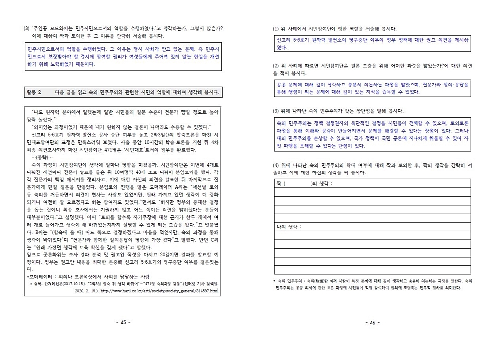 코로나 관련 면접100%예상논구술에세이적중문제 ‘민주시민과 토의토론’ 및 비이러스 문제