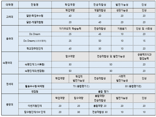 시대 사람 중심 선발 고려대“20C 패러다임은 21C에 맞지